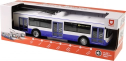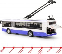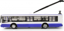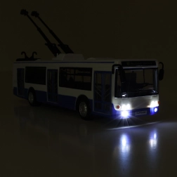Odkrijte zabavo mestnega prometa z modrim trolejbusom, ki govori češko in ob odpiranju vrat predvaja napovedi postaj. Realistični detajli v merilu 1:43 in dolžina 28 cm ga naredijo za odličen model in trpežno igračo za vsakodnevno igro.