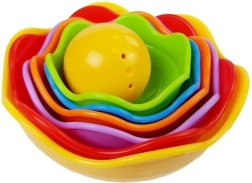 Igra z lončki naravno razvija ročne spretnosti in uči razmerja med različnimi dimenzijami predmetov. Zaradi živahnih barv in veselega dizajna bodo otroci igračo hitro vzljubili in se k igri vračali znova in znova – pri tem pa se učili.