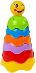 Ta barvita zložljiva piramida je idealna za zabavno učenje. Otroci lahko lončke zlagajo enega na drugega, jih vstavljajo drugega v drugega ali razvrščajo po velikosti in barvi. Varen, netoksičen material in zaobljene oblike zagotavljajo udobno in varno igro.