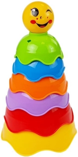 Igralna piramida v mavričnih barvah iz zložljivih lončkov podpira razvoj otroka že od prvih mesecev. Lončki iz kakovostne, varne plastike imajo gladke, zaobljene robove, na vrhu pa je najmanjši lonček z veselim obrazkom. Igrača razvija fino motoriko, koordinacijo oko–roka, prepoznavanje barv in oblik ter logično razmišljanje.