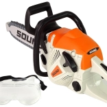 Žaga je opremljena z zvočnimi efekti, ki posnemajo pravo motorno žago.