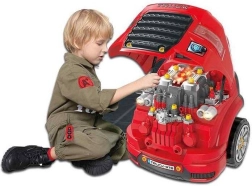 Tovornjak z odpirajočim se pokrovom motorja omogoča otrokom raziskovanje mehanskih elementov, kot so svečke in olje, kar povečuje njihove tehnične veščine.