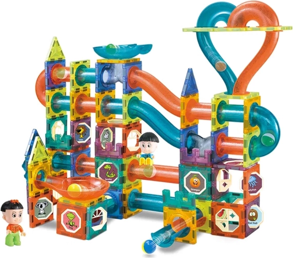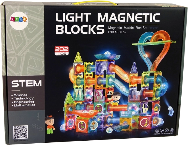Odkrijte ustvarjalno zabavo z gradbenim kompletom, ki združuje magnetne kocke in svetlečo kroglično stezo. Set s 202 deli spodbuja fino motoriko, ustvarjalnost in logično razmišljanje. Zahvaljujoč LED elementom in reflektorjem je vožnja kroglic še privlačnejša, tudi v temi. Odlično darilo za otroke od 3 let z varnimi, certificiranimi materiali in preprostim magnetnim spajanjem.