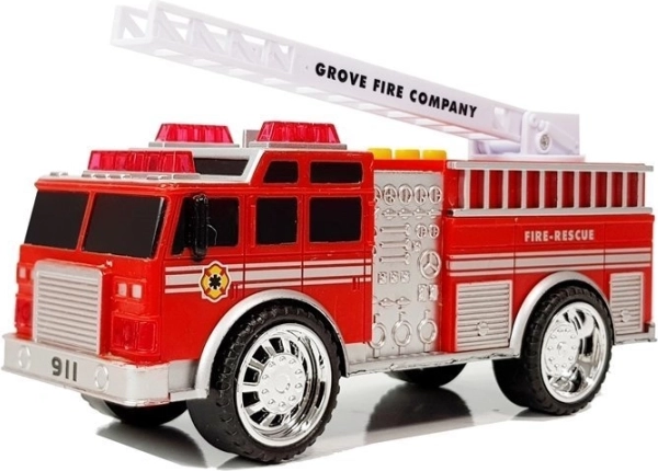 Podrobno izdelano gasilsko vozilo v izraziti rdeči barvi z lestvijo za reševalne akcije. Odlično spodbuja domišljijsko igro in prizore intervencij pri požarih.