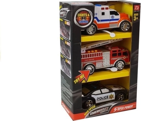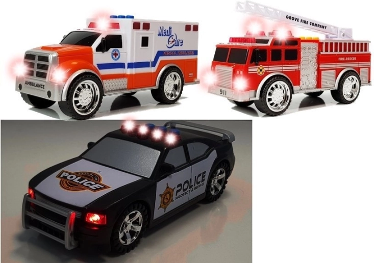 - 3 vozila v kompletu: policija, gasilci, rešilni avtomobil