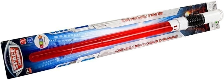 Svetlobni meč deluje s pritiskom na gumb, ki je nameščen na sredini ročaja. Po aktivaciji se meč zasveti z intenzivno rdečo svetlobo in zaslišijo se zvočni efekti boja.