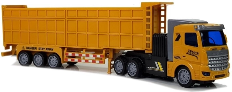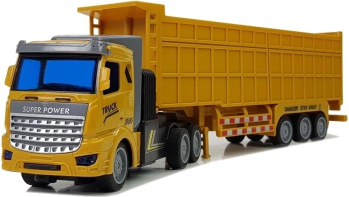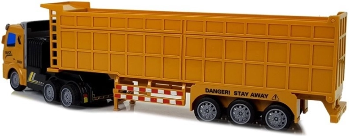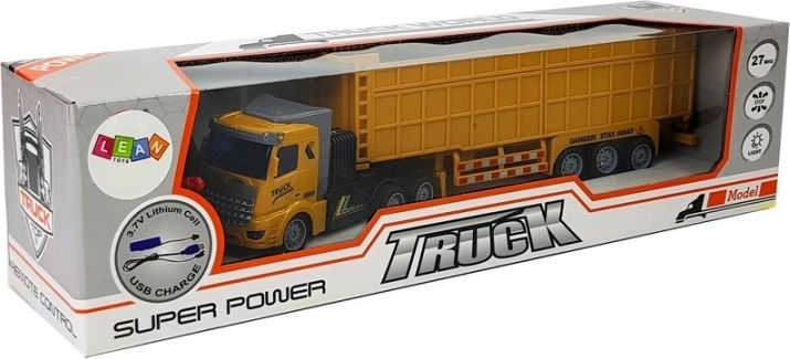 Ta podrobno izdelan priklopni kamion na daljinsko upravljanje ponuja realistično vožnjo, ki jo imajo otroci radi. Tekalne pnevmatike, rumena kabina s priklopnikom in izraziti potiski spodbujajo domišljijo in igranje vlog. Pri vožnji naprej se v kabini prižgejo modre LED diode, ki igri dodajo učinek.