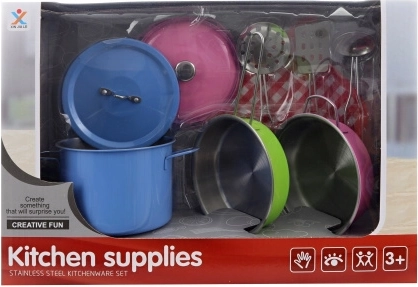 S tem setom pločevinaste posode lahko vaši otroci razvijajo svoje kuharske spretnosti na varen in zabaven način. Set vsebuje: