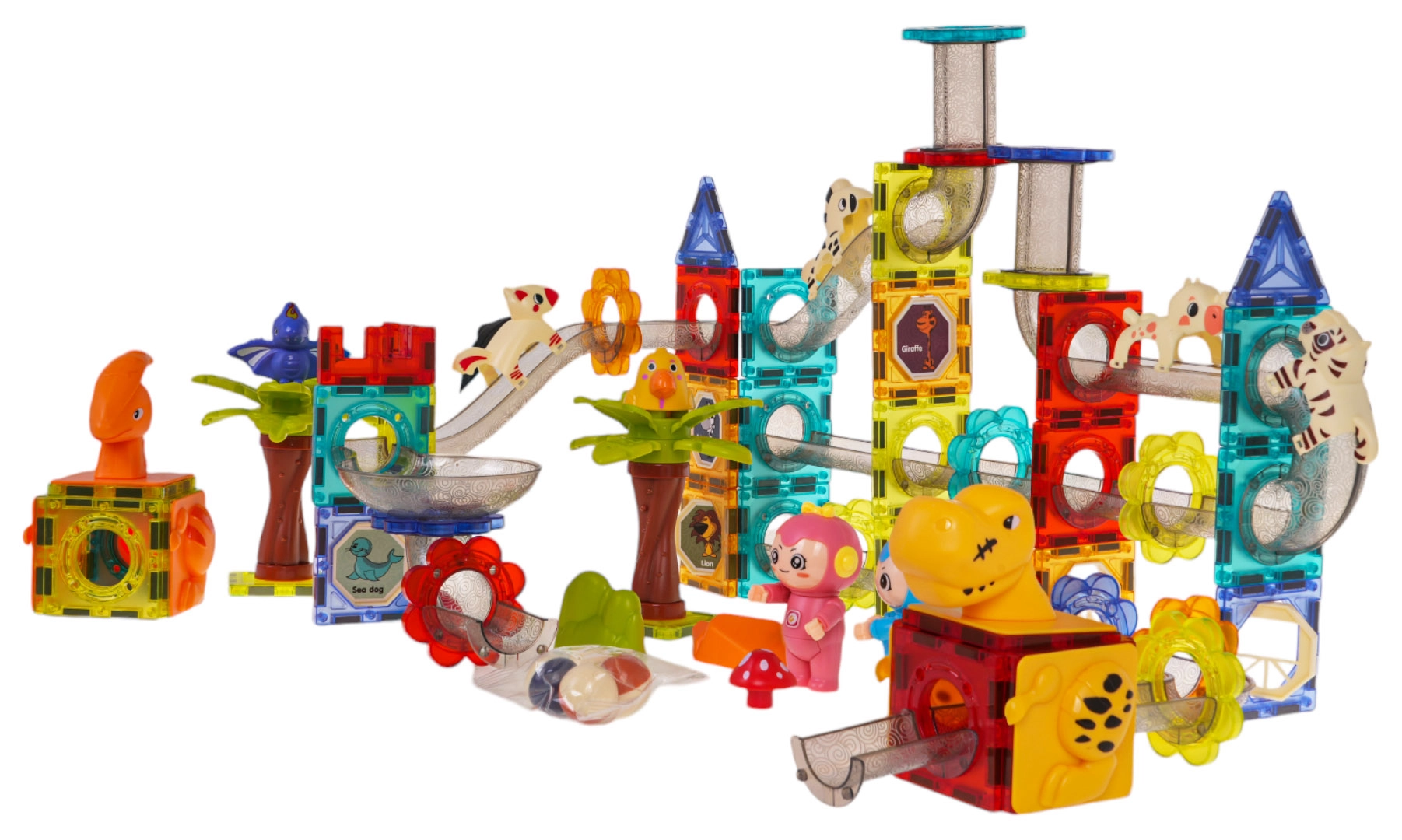Komplet barvnih magnetnih kock z motivom ZOO, za otroke od 3 let naprej. Set vsebuje 153 elementov in omogoča sestavo poljubno razporejenih stez za kroglice. Opeke so izdelane iz najkakovostnejše plastike, gladke in skrbno obdelane. Povezujejo se s pomočjo vgrajenih magnetov. Magneti zelo dobro držijo in zagotavljajo stabilnost konstrukcije. Del kompleta je slikovni priročnik za sestavljanje vzorčnih stez. . |