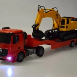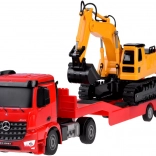 Razveselite male graditelje s tem izjemnim gradbenim setom na daljinsko upravljanje znamke Mercedes-Benz, ki ponuja realistično zabavo s tovornjakom, prikolico in bagrom v merilu 1:26.