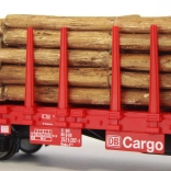 Privlačen model štiriosnega ploskovnega vagona Roos‑t s klanicami in tovorom lesenih hlodov v izvedbi Nemških železnic. Vagoni tega tipa se uporabljajo tudi za prevoz drugih lesnih polizdelkov ali celo jekla. Realistično izdelan tovor je mogoče odstraniti, prav tako je mogoče prilagajati razporeditev klanic. V pakiranju je priloženih tudi več nadomestnih klanic. Zaradi dovršenega odlitka, kakovostnega kontrastnega lakiranja in ostrega tiska odlično izstopajo detajli konstrukcije in upravljalnih naprav. Tla vagona verno prikazujejo tudi žlebičenje površine, čela pa krasijo dodatno pritrjene ročice in stopnice. Za večjo raznolikost v garniturah z že prej izdanimi modeli tega tipa je bila spremenjena oznaka vagona. Natančno zasnovano in sestavljeno podvozje zagotavlja vrhunske vozne lastnosti. Glavne lastnosti: štiri osi, verno izdelan tovor, odstranljive klanice, ohišje po NEM 362 s kinematiko kratke spenjače