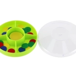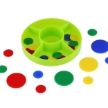 Otroška igra Bolhe je zabavna igra, ki razvija fino motoriko in koncentracijo pri otrocih. V paketu najdete štiri raznobarvne sete kolesc, vsak set vsebuje pet majhnih kolesc in eno veliko. Igra vsebuje tudi škatlico s številnimi predalčki, ki omogočajo različne igralne kombinacije. Cilj je s pomočjo velike bolhe spraviti vse majhne bolhe v predalčke v škatlici.