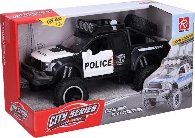 Kupite policijski terenski avto z učinki, dolg 26 cm, s svetlobnimi in zvočnimi učinki, baterije priložene. Idealno darilo za otroke.