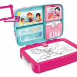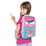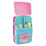 Ta ustvarjalski otroški nahrbtnik v rožnati barvi, velikosti 28 cm, je idealen spremljevalec za vašega otroka. Vsebuje praktične predalčke za likovna orodja in magnetno tablo za krede in flomastre.