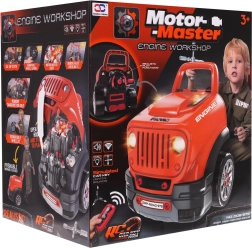 Ta interaktivni tovorni avto spremeni otroško sobo v pravi servis. Pod pokrovom se skriva velik razstavljiv motor, ki ga je mogoče s pomočjo vijakov in orodja zlahka sestavljati in razstavljati, menjati svečke in kolesa. Na armaturni plošči najdete gumb za zagon z zvoki zagona, volan s hupo in opozorilne luči. Pod volanom je praktičen prostor za shranjevanje orodja.