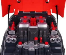 Pod pokrovom se skriva velik motor, ki ga je mogoče s pomočjo vijakov in orodja razstaviti in ponovno sestaviti. Otroci vadijo fino motoriko in razumejo, kako avto deluje.