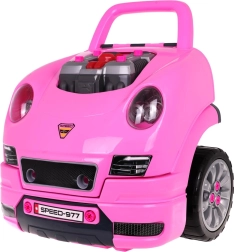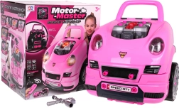 Daljinski upravljalnik v obliki ključev sproži svetleče sprednje žaromete in osvetlitev motorja, pa tudi zvoke zaklepanja/odklepanja ter hupo. Priročen ročaj olajša prenašanje, predal pod volanom pa sprejme vse vijake, orodje in dodatke. Komplet razvija spretnosti, domišljijo in uči osnov mehanike na igriv način.