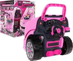 Interaktivni sprednji del vozila z armaturno ploščo in avtomatsko »prestavno« ročico ponuja otrokom realističen občutek vožnje in servisa. Po pritisku na start se zasliši zvok zagona, pri vožnji naprej in vzvratni vožnji se sprožijo ustrezni učinki. Pod pokrovom se skriva velik razstavljiv motor, kjer lahko mali mehaniki menjajo »svečke«, kolesa in druge komponente.