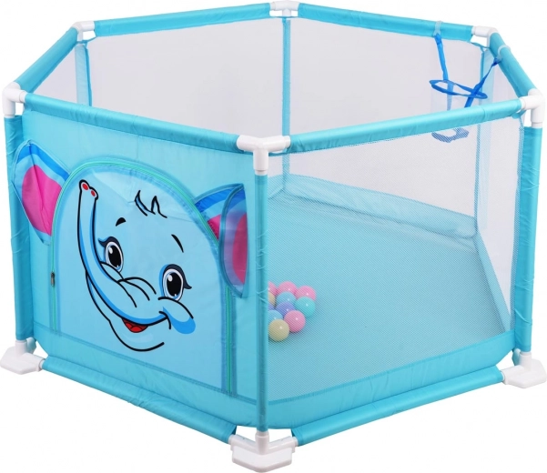 Ograja slonček je idealna izbira za starše, ki želijo za svoje otroke varen in pregleden prostor za igro. Konstrukcija združuje lahke cevi in odporno tkanino z mrežo na petih straneh, tako da boste otroka dobro videli, hkrati pa je zagotovljeno kroženje zraka. Vhod na zadrgo na steni s slončkom omogoča udoben vstop in izstop.