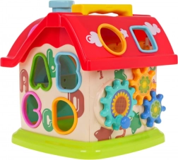Multifunkcijska hišica s sortirnikom je idealna interaktivna igrača za najmlajše. Zaradi izrazitih barv in premišljeno zasnovanih aktivnosti podpira koordinacijo oko–roka, razvoj kognitivnih spretnosti in učenje skozi igro. S streho z odprtinami za geometrijske oblike, steno z izrezi črk A–D ter učno uro otroci urijo prepoznavanje oblik, črk in časa.