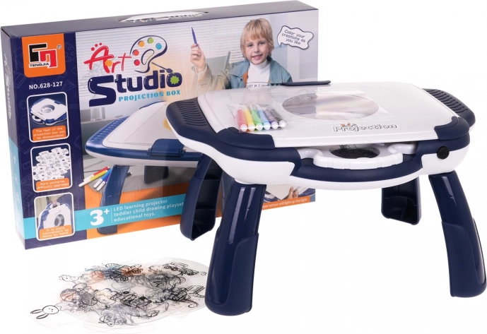 Projekcijska mizica za risanje je odličen način, kako otrokom olajšati prve korake v svetu ustvarjanja. Zahvaljujoč 12 kolutom s 4 diapozitivi na vsakem lahko izbirajo med desetinami slik – od živali in dinozavrov do vozil, hiš in rastlin. Slika se projicira neposredno na risalno površino in otrok jo lahko preprosto preriše.