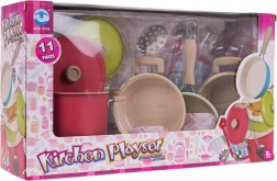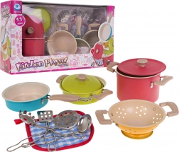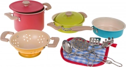 Ta barvit set otroške posode prinaša avtentično izkušnjo kuhanja v vsako otroško kuhinjo. Dva lonca s pokrovkama, ponev, cedilo in štirje praktični kuhinjski pripomočki zagotovijo vse, kar otroci potrebujejo za posnemanje pravega kuhanja. Zahvaljujoč kovinskim materialom je set trden, vzdržljiv in pripravljen na vsakodnevno igro.