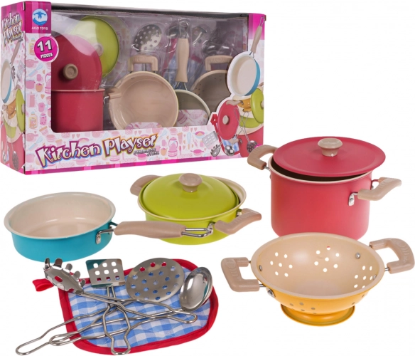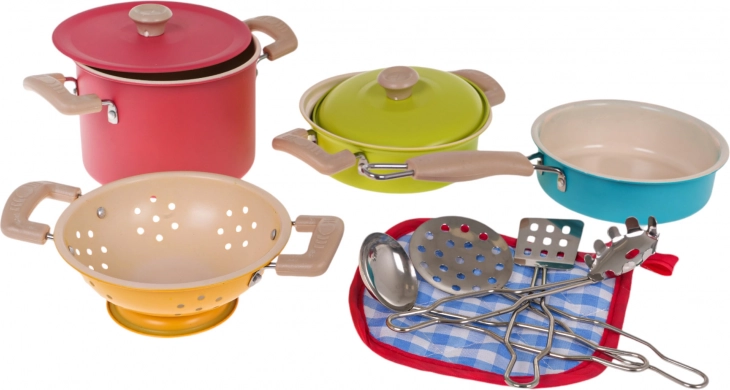 Barvit set otroških loncev in kuhinjskih pripomočkov – kovinski, 11-delni
