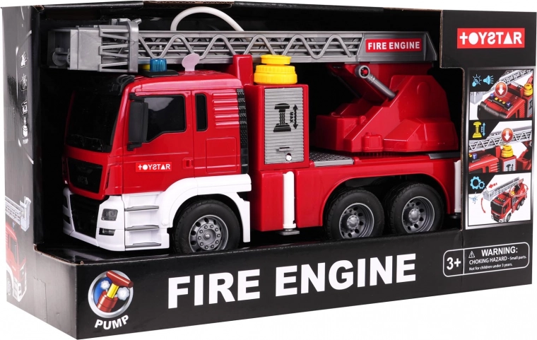 Gasilsko vozilo z vodno funkcijo je odlična igrača za otroke, ki obožujejo akcijo in reševalne misije. Zahvaljujoč rezervoarju za vodo in delujoči pršilni cevi lahko mali gasilci “gasijo” požare kot v resnici. Za avtentično izkušnjo poskrbijo svetlobni modri oblaki in realistični zvoki sirene, zagona ter delovanja motorja.
