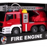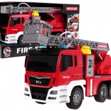 Avto je izdelan iz odporne plastike, ima gumijaste pnevmatike za boljši oprijem in tlačni (friction) pogon za enostavno vožnjo brez baterij. Lestev s košaro je mogoče ročno dvigovati, spuščati in izvleči, iztegljiva roka se vrti za 360°. Ne manjkajo stranska loputa z dostopom za gasilsko cev, 4 izvlečne stabilizacijske opore in odpirajoča se loputa na iztegljivi roki.