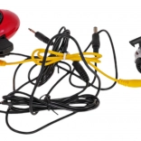 . | - konstrukcijski deli tirnic, .- 2 vozili, .- 2 daljinska upravljalnika, - USB napajalni kabel za adapter . |