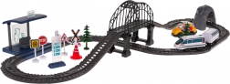 Odkrijte zabavo s kompletno sodo za male strojevodje: železniška proga s postajo, mostom in tunelom, modernim vlakom in bogatimi dodatki. Set s 76 deli ponuja svetlobne in zvočne učinke postaje, magnetno spajanje ter taksi s figuricami za še bolj ustvarjalno igro. Vlak vozi naprej in nazaj, tirnice imajo čvrste zaskočljive spoje, celoten set pa je zaradi kakovostne plastike trpežen za vsakodnevno igro.
