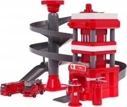 Gasilska postaja z večnivojsko spiralno rampo, omogoča gasilskim avtomobilom, da se spuščajo navzdol in tako razvijajo motorične sposobnosti otrok.