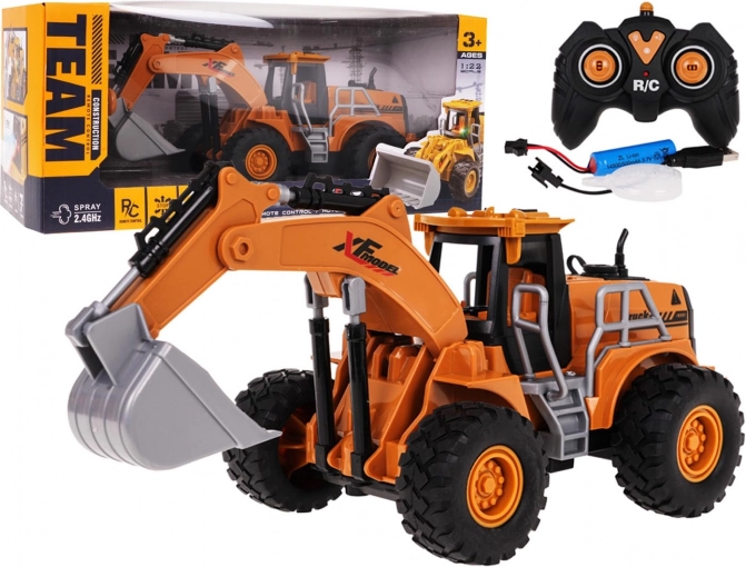 Uživajte v zabavi z RC bagrom, ki je opremljen s svetlobnimi in dimnimi učinki za kar se da realistično igro. Ta model je izdelan iz vrhunske plastike in zasnovan v merilu 1:22. Bager se lahko vozi v vse smeri, njegovo roko pa je mogoče ročno premikati gor in dol.