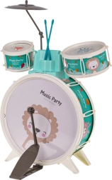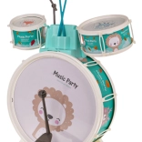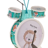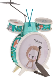 Vnesite veselje v otroško sobo s tem otroškim bobnarskim kompletom. Vsebuje tri bobne z lepimi živalskimi motivi leva, oslička in lisice, poleg tega činelo in dve paličici. Priložen je tudi udoben stolček za preprosto sedenje med igranjem.