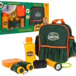 Komplet Malega Odkritelja je idealen za radovedne otroke od 3. leta, ki želijo raziskovati svet. Komplet vsebuje nahrbtnik, daljnogled, svetilko, lupo, posodo za pijačo, posodico za hrano in fotoaparat.