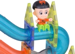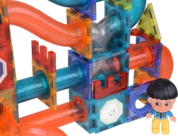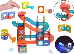 Ta barvit set magnetnih kock omogoča otrokom oblikovati in graditi preproste oblike ter kompleksne 3D konstrukcije in kroglične steze. Izbrani deli so opremljeni z LED osvetlitvijo, ki ustvarja efektne svetlobne prehode kroglic in dobesedno razsvetli vsako zgradbo. V pakiranju najdete tudi nalepke in pregledna navodila z navdihi.