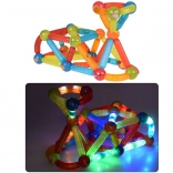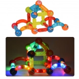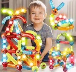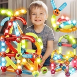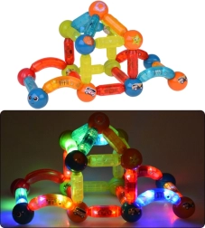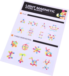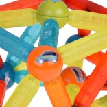 Magnetna sestavljanka omogoča gradnjo raznolikih ploskih in tridimenzionalnih struktur, spodbuja ustvarjalno igro ter razvoj motoričnih in logičnih spretnosti.