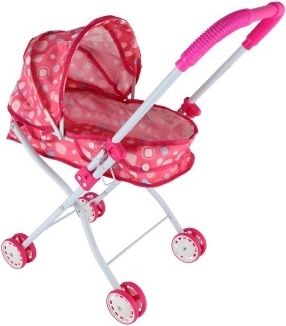 Privoščite svoji mali mamici čudovit globok voziček za punčke z mehko tekstilno košaro. Zaradi lahke kovinske konstrukcije in vzdržljivih koles je z njim enostavno upravljati doma in na prostem. Tekstilni deli v rožnatih vzorcih delujejo igrivo, skrbna izdelava pa zagotavlja dolgo življenjsko dobo.