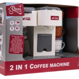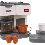 Interaktivni dvodelni set vključuje parni aparat in kapsulni kavomat, ki navdušuje z realističnim videzom in funkcijami. Otroci lahko uporabljajo obe napravi hkrati ali ju ločijo in se igrajo z vsako posebej. Kavomat ima odpiralen predal za kavo, rezervoar za vodo in tri gumbe za pripravo majhne ali velike kave ter zagon funkcije vode. Med kuhanjem kave se oglašajo realistični zvoki, rdeča lučka pa utripa ob iztoku vode.