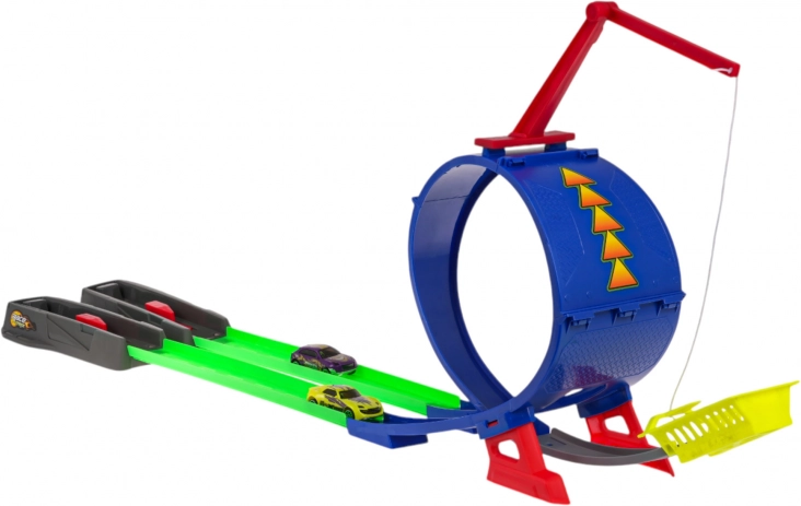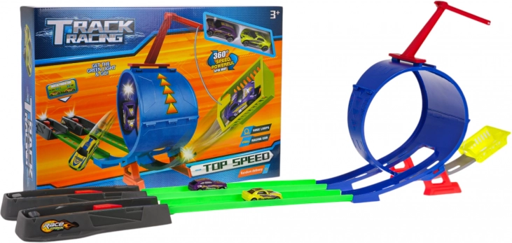 Dirkalna steza z izstreljevalnikom Top Speed za otroke od 3 let. Vsebuje 360° zanko in 2 avtomobilčka.