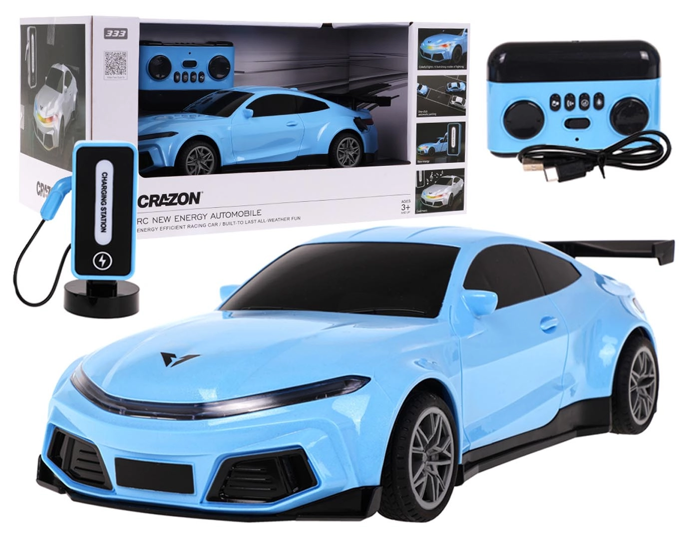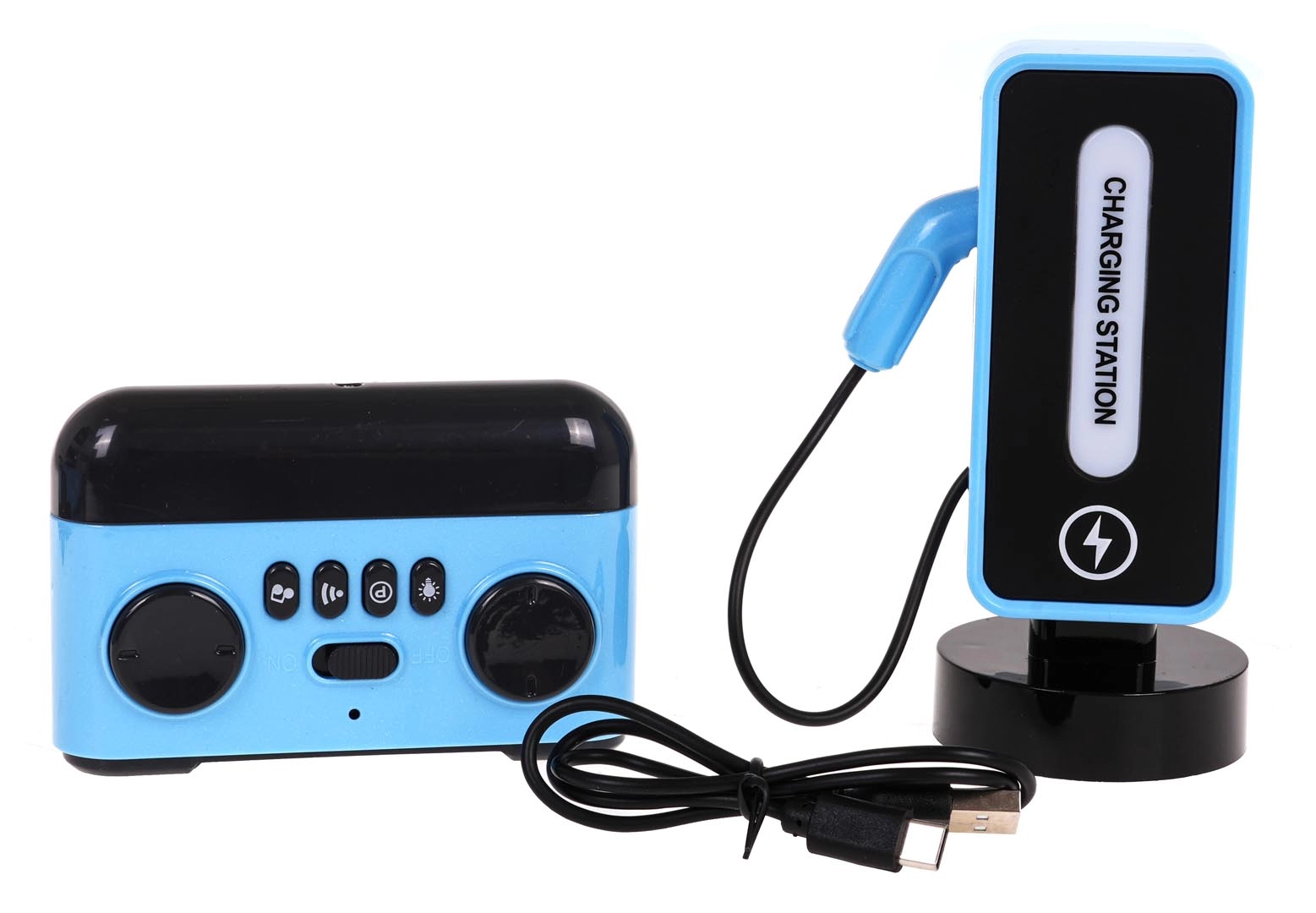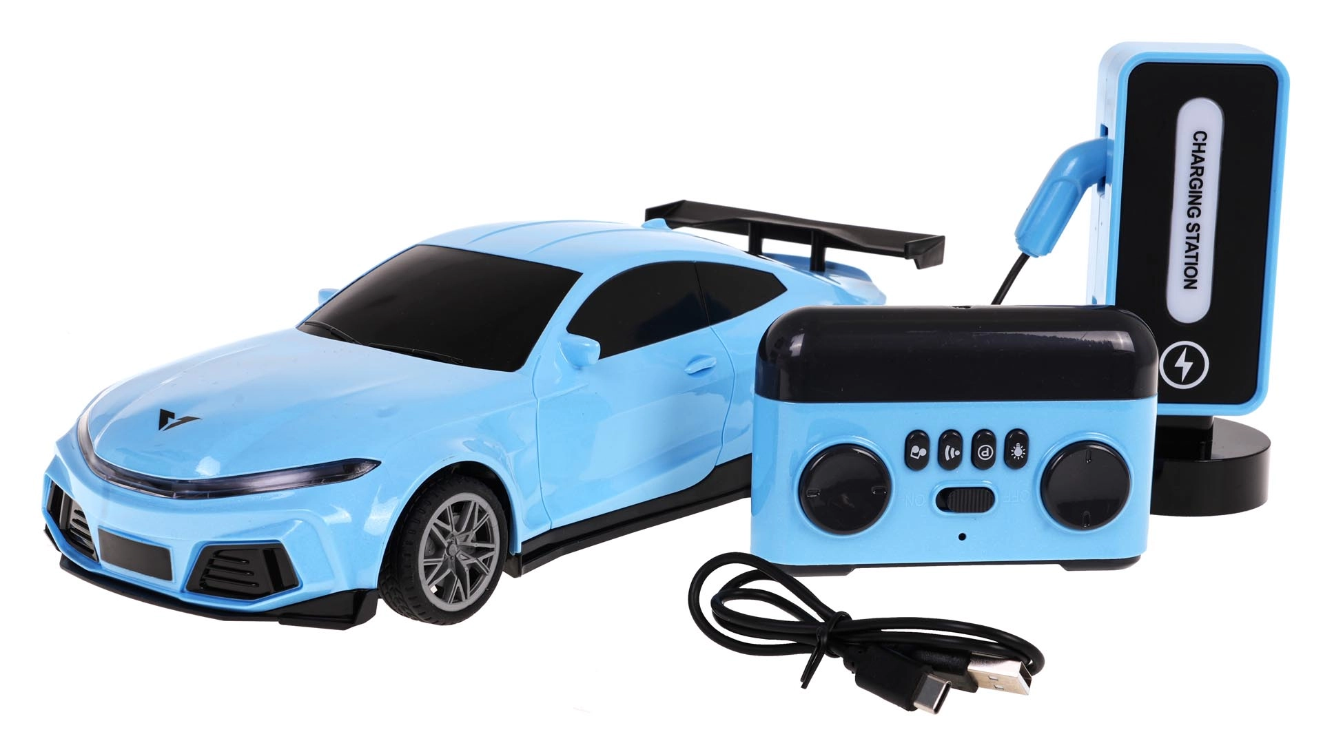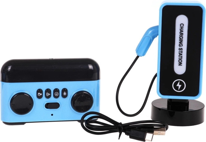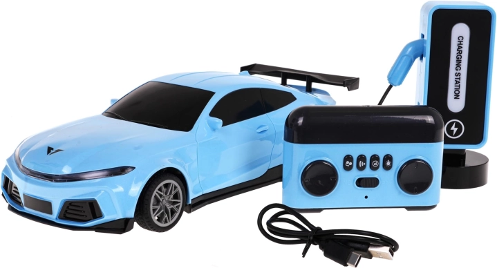 Del kompleta je tudi elegantna polnilna postaja z osvetlitvijo in osvetljenim vhodom za polnjenje. Avto ima vgrajen akumulator 3,7 V 400 mAh, postaja 3,7 V 1200 mAh; daljinski upravljalnik potrebuje 2× AA 1,5 V (nista priloženi). Zahvaljujoč frekvenci 2,4 GHz je upravljanje stabilno in brez motenj.