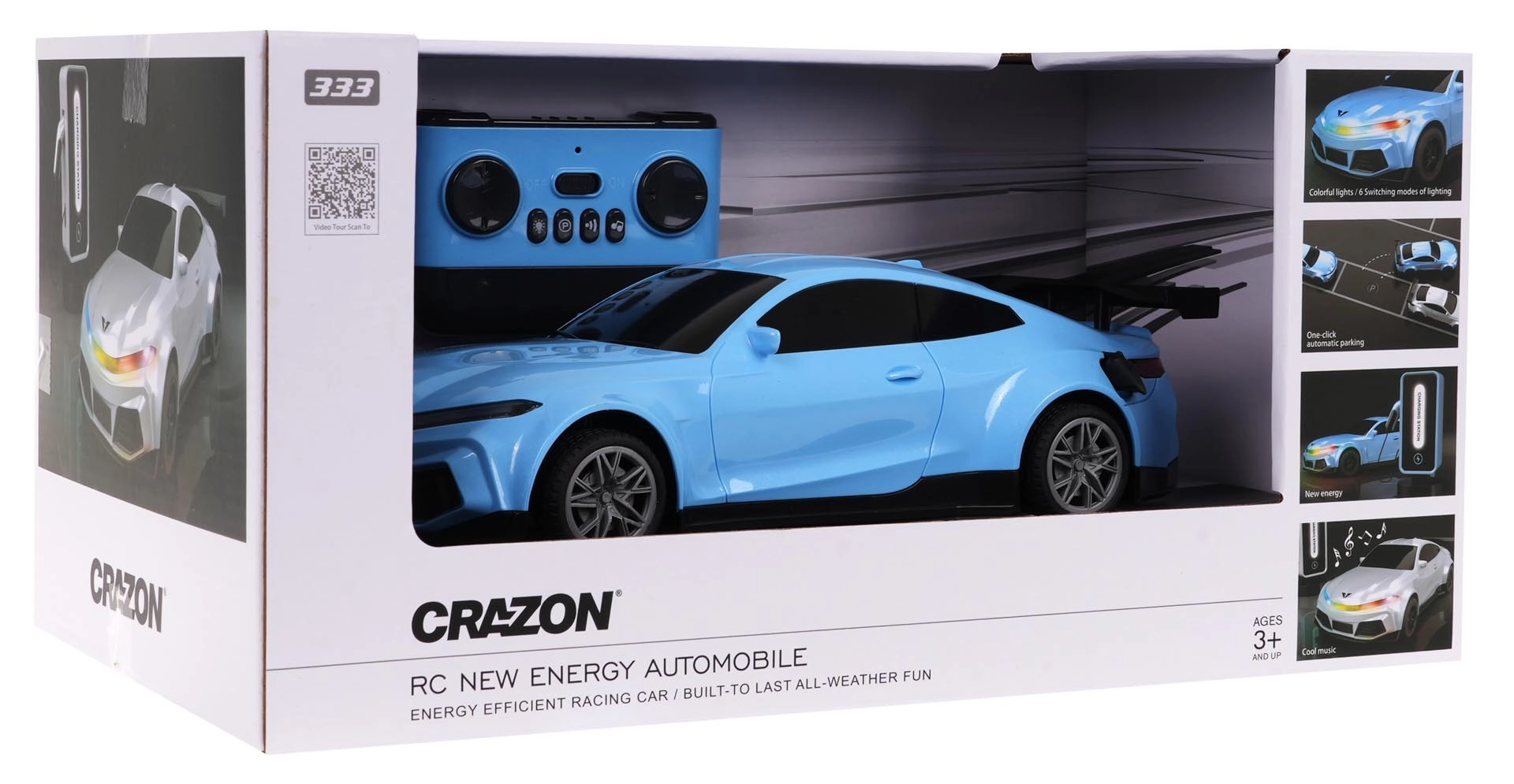 RC avto s preprostim upravljanjem vozi v vse smeri – naprej, nazaj, desno in levo – gumijaste pnevmatike pa zagotavljajo odličen oprijem. Sprednje in zadnje luči svetijo in utripajo, barvo je mogoče spremeniti v vijolično, rdečo ali modro. Za še več zabave poskrbijo smerniki, hupa in melodije.