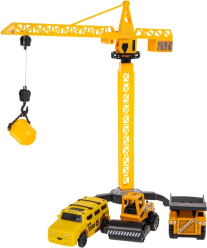Žerjav se ponaša z 360° vrtljivo roko in ročno upravljanim kavljem za nakladanje. Med dodatki so različna premična gradbena vozila, kot je prekucnik z nastavljivo keso in cestni valjarji z vrtljivimi bobni. Električni avto poganja baterija tipa 1 x AA 1,5 V (baterije niso priložene).