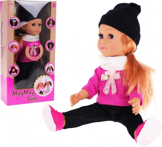 Punčka prinaša tudi zvočno doživetje – ob pritisku na trebušček predvaja vesele pesmice. Baterije tipa 3 × AG13 so priložene. Ta igrača ne le zabava, temveč spodbuja tudi razvoj motorike otrok.