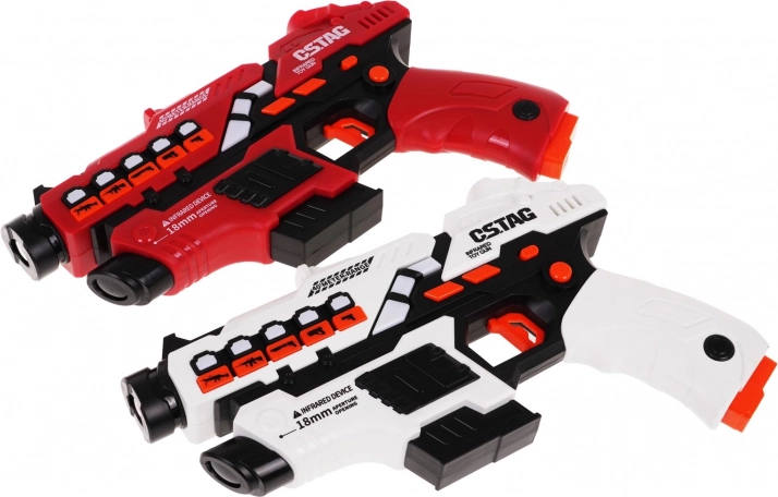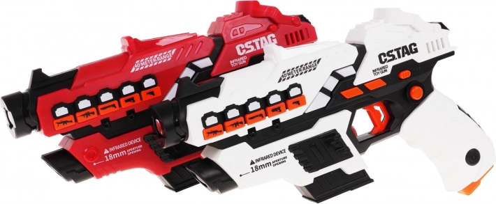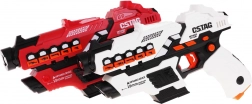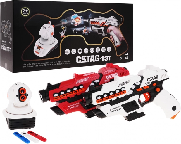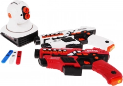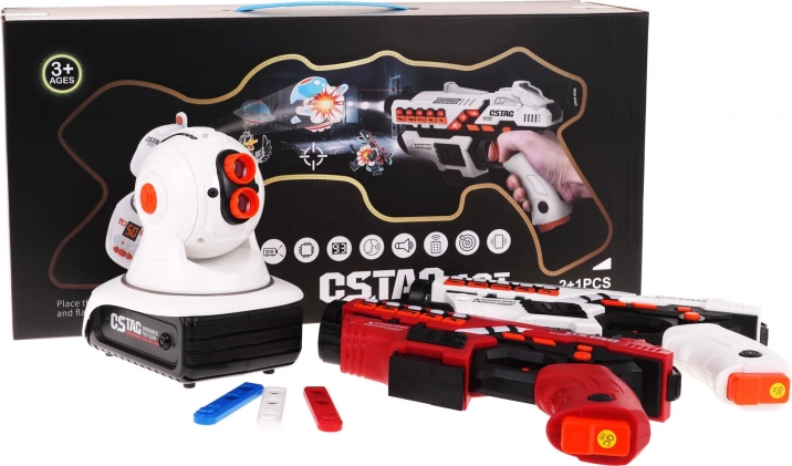 Vstopite v svet akcijske zabave z laserskim setom, ki združuje dvoboje igralec proti igralcu in streljanje na premične cilje iz projektorja. Pištoli imata števec življenj, vibracije in svetlobne učinke, zato je vsak zadetek čutiti in slišati. Zahvaljujoč 5 načinom orožja prilagodite slog igre in lahko sestavite do 4 barvne ekipe (rdeča, zelena, modra, bela).