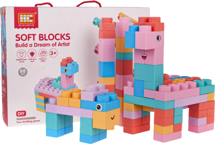 Komplet mehkih gradbenih kock je idealen za otroke od 3. leta dalje. Izdelan iz varnega PVC, ponuja živahne barve in enostavno vzdrževanje; barve se ne spremenijo niti po prekuhavanju.