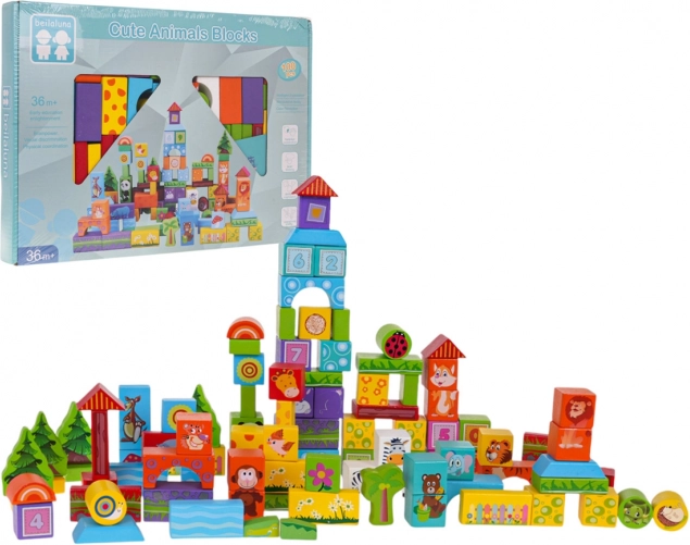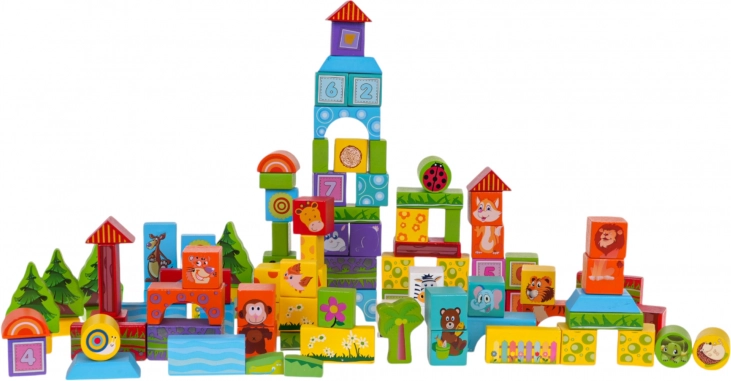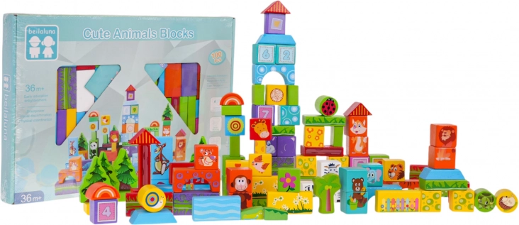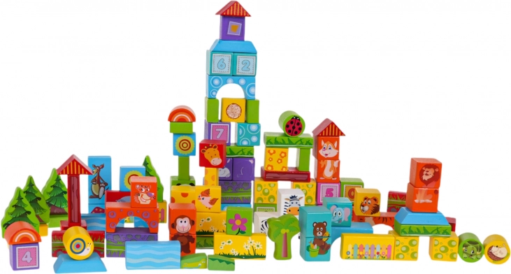 Odkrijte klasiko, ki zabava in razvija – 100 kosov lesenih kock v različnih oblikah in barvah z motivi živali, črk in oblik. Izdelane iz kakovostnega lesa, z varnimi barvami in gladkimi robovi za udobno in varno igro. Del paketa je slikovni priročnik z navdihom za gradnjo. Odlično za razvoj ustvarjalnosti, motorike in prostorske predstavljivosti otrok od 3 let dalje.
