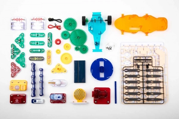 - Več kot 60 sestavnih delov vključno z letalom, mini avtom, motorjem z menjalnikom in detektorjem gibanja