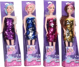 Oblači, počeši in gremo v mesto na zabavo! Ta stilska punčka z barvnim pramenom v laseh in obleko s flisi, ki spreminjajo barve, je idealna za vsako malo gospodično.