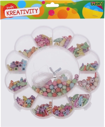 Kreativni komplet kroglic 80 g v obliki cveta. 13 vrst kroglic + vrvica. Idealno za izdelavo zapestnic, ogrlic in DIY dekoracij.